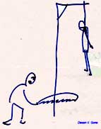 "Le confinement durait déjà depuis plusieurs semaines et il s'était accentué. Les amendes pleuvaient sur les passants qui n'avaient correctement rempli leurs attestations. Deux personnes qui s'étaient serré la main (par provocation?) ont dû payer 1350 euros chacun, car dans ce cas c'est 135 euros par doigt. Nous vous rappelons que le moindre " bonjour " peut déchaîner le virus (message de prévention). Pour accéder à un magasin il fallait qu'on prenne votre température, mais comme le gouvernement n'avait pas commandé assez de thermomètres sans contact que l'on dirige vers le front, il fallait se déculotter et attendre trois minutes le verdict du thermomètre anal. Au début, cela choqua un peu, puis on s'habitua à voir cet étalage de fesses à l'étal de chaque commerce. La personne qui dépassait les 37.5 était immédiatement embarquée pour une destination inconnue pour qu'on ne puisse pas la retrouver et se faire contaminer. Les hôpitaux étaient applaudis tous les soirs à 20h, au début par les gens sur leurs balcons ; par la suite ce furent des applaudissements enregistrés. On avait fermé les églises, les écoles, les théâtres, les cinémas, les stades, les magasins de luxe ; certains préconisaient de fermer aussi les hôpitaux puisqu'on y trouvait le plus fort taux de contagion (certains médecins en étaient morts) et que de toute façon il n'y avait pas de traitement pour cette pandémie. Finalement, on avait préféré fermer les prisons Qu'ils aillent se faire pendre ailleurs ! (déclaration du Ministre de la Justice)" (22)