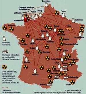 Lies and illusions about nuclear power Nuclear electricity covers only 16% of the total energy consumption in France and this percentage is shrinking. Its cost increases continuously, that of renewable energy decreases constantly. According to the Cour des comptes, nuclear power is a disaster for French finances, — before causing a disaster like Fukushima, "possible" according to the Nuclear Safety Authority. (Updated 9/23/20) Summary of this file: 1 NUCLEAR ELECTRICITY - GAS EMISSION? In France, the electricity of nuclear origin DOES NOT REPRESENT 75% of electricity production, useful to users outside the atomic industry itself, and even less of the total energy produced. "The General Commissariat for Sustainable Development specifies that 'the international convention (…) wants electricity of nuclear origin to be accounted for the heat produced by the reaction, heat of which two-thirds is lost during conversion into electrical energy.' Therefore, nuclear electricity, whose yield between primary energy (the heat released by uranium) and final energy (electricity sold to ultimate consumers) is even less efficient than that of fossil fuels, enjoys preferential treatment which consists of counting the waste heat as electricity! However, this waste heat is not anecdotal: in France, it represents around 900 billion kilowatt-hours, which is almost as much as all the heat needed to heat all buildings in France: houses, offices, public facilities, etc." (1) The electricity produced by the nuclear industry corresponds to 16% of total energy consumption in France. (2) This percentage is fairly stable but, in 2012 it fell to 10%. (3) Should we also remind that the nuclear industry itself is a large consumer of energy? (See the details below.) It is absolutely necessary to dismantle the propaganda which gives the impression that nuclear energy provides 75% of energy in France (the confusion is frequent) because, even in believing it, educated and reasonable people think that France cannot do without nuclear power. It can: see the analysis of Négawatt. (4) 2 PLACE OF NUCLEAR PLANTS IN THE WORLD "In Germany, renewable energies have produced almost twice as much as the reactors that were shut down (113 TWh vs 64 TWh). Renewable energies already represent 75% of electricity in Scotland, 72% in Denmark, 67% in Portugal." (5) Germany is at 45% renewable electricity, and is gradually closing its coal-fired power stations. "In the world, hydropower alone produces more electricity than the nuclear one. Key World Energy Statistics takes into account all the energy that comes out of nuclear power plants in the form of heat and then contradicts itself by citing the amount of TWh produced. "In ten years (2002-2012) renewable electricity production has increased worldwide from 2,960 TWh to 4,700 TWh (+ 59%) while nuclear electricity production has fallen from 2,660 TWh to 2,460 TWh (-8 %). Electricity from fossil fuels has increased by 46%" (6) Global consumption is constantly growing and is satisfied by an increase in the share of fossil fuels in the production of electricity, which has reached 15,390 TWh. We should reduce waste, but that is another debate. While the arguing goes on about the benefits of nuclear power vs. renewable energies (depending on the church to which one belongs … or the work of researching the information that one wants to undertake): "By taking into account the 'real cost of energy' which includes investment, construction, operation and maintenance (NB: not to mention waste management?), the electricity produced by the reactors built today is 5 to 10 times more expensive than the renewable equivalent. In 10 years, the cost of solar power plants has fallen by 88% and that of wind power by 69%, while that of nuclear has increased by 23%. In the United States, wind and solar energies cost less than gas and coal, and already cheaper than that of existing nuclear plants." (7)