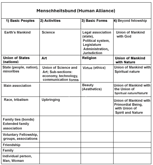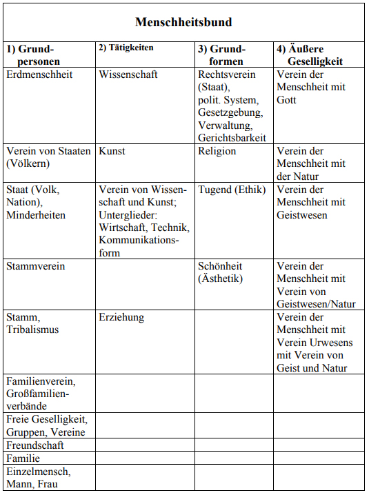 c) nach diesem Vergleich durch die Erarbeitung von Musterbildern wä eine Weiterbildung vom Individuum bis zum Staatenbund ausschließlich mit friedlichen und guten Mitteln einzuleiten.