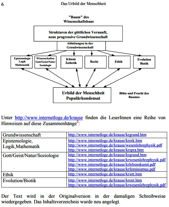 Darin werden die Ideen des Lebens und seine Entwicklungsgesetze nach der Wesenlehre "für Gebildete aus allen Ständen " ausgeführt. Die Internetloge hat eine Reihe der Grundlagen bereits publiziert und im Netz zugänglich gemacht, die hier als Basis dienen können und müssen.