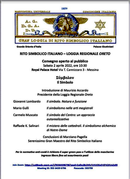 Translator's Note: This four Papers were presented at a Conference open to the public held on April 2, 2022, at the Royal Palace Hotel, Messina, sponsored by Loggia Regionale Oreto of the Rito Simbolico Italiano